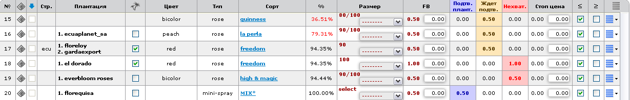 - Ранее нужно было использовать неудобную кнопку «Применить» для сохранения изменений в таблице заказа, таких как кол-во коробок, метки «не короче», «не длиннее», «только эта/эти плантации». В новом интерфейсе редактирования заказа в этой кнопке необходимость отпала. Теперь все изменения в процессе работы запоминаются автоматически (однако, при завершении работы над заказом не забудьте его сохранить или отправить).